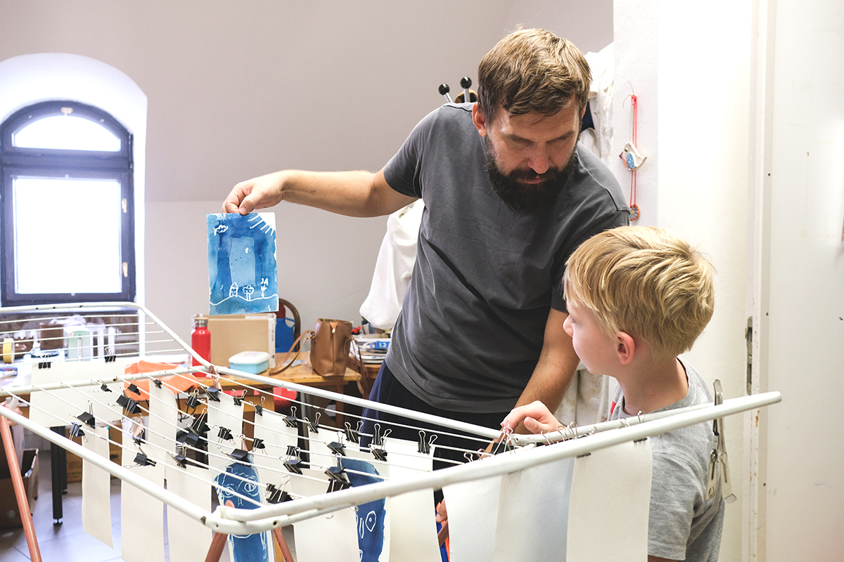 Tvorivá dielňa pre najmenších s Elenou Tarábkovou a Martinom Danišom k výstave Zvuk, obraz, príbeh.