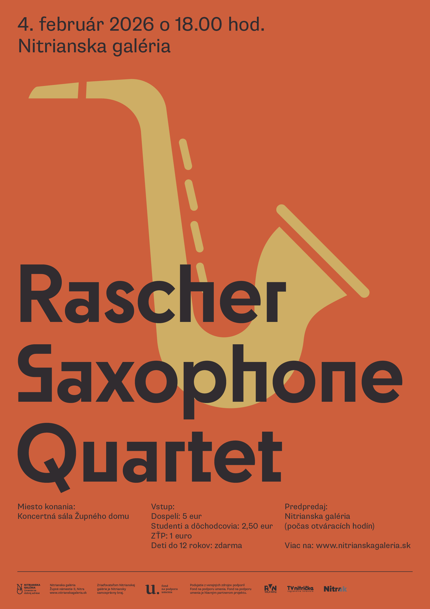 Na koncerte odznie poslucháčsky lákavý repertoár úprav skladieb klasikov pre saxofónové kvarteto, niekedy aj v kombinácii s klavírom. Zaujímavosťou bude svetová premiéra skladby pre dva kontrabasové saxofóny a klavír. „Kontrabasový saxofón sám o sebe je nesmiernou raritou a vzácnosťou. Na svete je ich len niekoľko a zberatelia sa doslova prebiehajú, ak sa nejaký ocitne na trhu. V Raschèr Saxophone Quartete sú hneď dvaja takíto zanietení zberatelia – Holanďan Andreas van Zoelen a nám dobre známy klavirista a dnes už aj etablovaný saxofonista Ladislav Fančovič, ktorý je členom kvarteta od jesene 2025. Skladba klasickej hudby pre dva kontrabasové saxofóny ešte nezaznela nikde na svete, preto bude mať Slovenské publikum skutočne možnosť, akú nikto iný na svete doteraz nemal. Túto skladbu s názvom Horon napísal priamo pre interpretov významný turecký skladateľ Özkan Manav. Okrem tejto špecialitky odohrá kvarteto spolu s klaviristkou Angelinou Kydorou z Ukrajiny nádherný program zložený z úprav skladieb Bacha, Mozarta, Beethovena, Clary Schumannovej a Drakea Mabryho pre saxofónové kvarteto“, informovala spoluorganizátorka koncertov Jana Dekánková.
