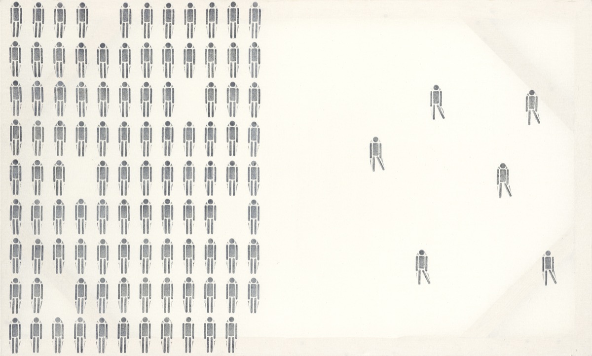 Dve plátna z cyklu Konformizmus – Alternatíva v zbierke Nitrianskej galérie pochádzajú z raného obdobia Ševčíkovej tvorby, v ktorej ešte badať vplyv štúdia grafiky na vysokej škole, no zároveň je v nich už citeľné smerovanie k znakovému a konceptuálnemu vyjadrovaniu sa a k jeho typickej práci s protikladmi prázdneho a plného. Polopriesvitné plátna sú rozdelené na dve polovice. Naľavo vidíme v šíkoch zarovnané postavy – jednoduché piktogramy ľudí. Sériovosť mechanického odtlačku pečiatky odkazuje na konformitu človeka začleneného do spoločnosti. V prvom obraze je na pravej strane osamotená figúrka, ktorá vystúpila z davu (kde zanechala prázdne miesto) a namiesto poslušného státia na mieste akoby kráčala. Na druhom obraze je už panáčikov kráčajúcich preč z davu viac. Ako názov cyklu napovedá, ústrednou témou diel je prispôsobivosť, resp. jej opak – neprispôsobivosť, neposlušnosť, vyčnievanie z davu. Ak je v prvom plátne nonkonformný človek osamotený a v dave nezanecháva veľkú stopu vo forme prázdneho priestoru (čiže nie je pre masu „nebezpečný“), v druhom plátne sú viacerí nonkonformisti na pravej strane obrazu už viditeľnejší, majú väčšiu váhu a spôsobujú viac „prázdnych miest“ v spoločnosti. Tieto diela teda môžeme vnímať ako úvahu nad tým, čo to znamená, byť prispôsobivý väčšinovej spoločnosti a ako človeka vníma väčšina, ak sa do nej nechce začleniť. Samozrejme, ak je človek sám, je najviac na očiach, no zároveň má najmenší vplyv na väčšinovú spoločnosť. Ak je ľudí nezapadajúcich do spoločenských konvencií viac, môže byť ich hlas počuteľnejší – časom môžu jednoduchšie presadiť svoje názory a potreby a môžu byť nakoniec akceptovaní aj väčšinou (napr. marginalizované skupiny ako homosexuáli a pod.). Ak sa však z homogénnej masy vyčlenia všetci a presunú sa na opačnú stranu, stane sa z nonkonformizmu nová norma, nový konformizmus – podobne ako to vidíme pri rôznych módnych či subkultúrnych vlnách. Čo to teda znamená, byť alternatívny? K čomu/voči komu? Kto je tu väčší konformista? Ten, kto zotrvá, alebo ten, kto sa pridá k ostatným „odpadlíkom“, ktorí časom môžu vytvoriť novú väčšinu?